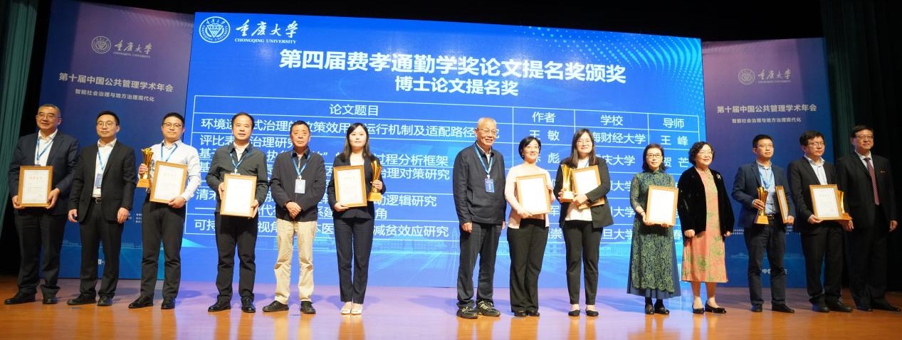 10月12日,第四届“费孝通勤学奖”颁奖典礼在重庆大学举行。继公司2020届硕士白浩然同学获得第三届“费孝通勤学奖”唯一优秀硕士学位论文奖(指导教师李晓梅)以来,杨舒雯、史军、郑冰鑫3位同学在本届评选中再创佳绩。