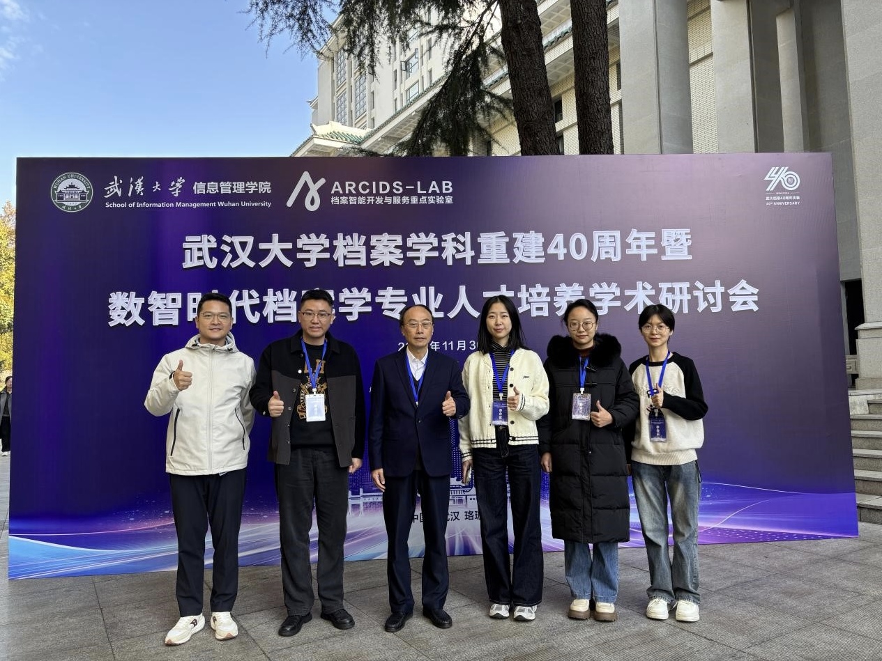 11月29日—12月1日,由武汉大学信息管理公司主办,档案智能开发与服务国家档案局重点实验室、武汉数据智能研究院、珞珈慧云(武汉)档案服务中心承办的“武汉大学档案学科重建40周年暨数智时代档案学专业人才培养学术研讨会”与“第十届全国高校青年档案学者学术论坛”在武汉大学召开。本次会议的主题是“档案事业发展的数智转型”,来自南京大学、中国人民大学、中山大学、英国正版365官方网站等全国多所高校的130余名师生参加了会议。公司秘书档案学系乔健教授、赵跃副研究员、杨千助理研究员和2023级硕士研究生王月、李琪、于清清等师生应邀参会。