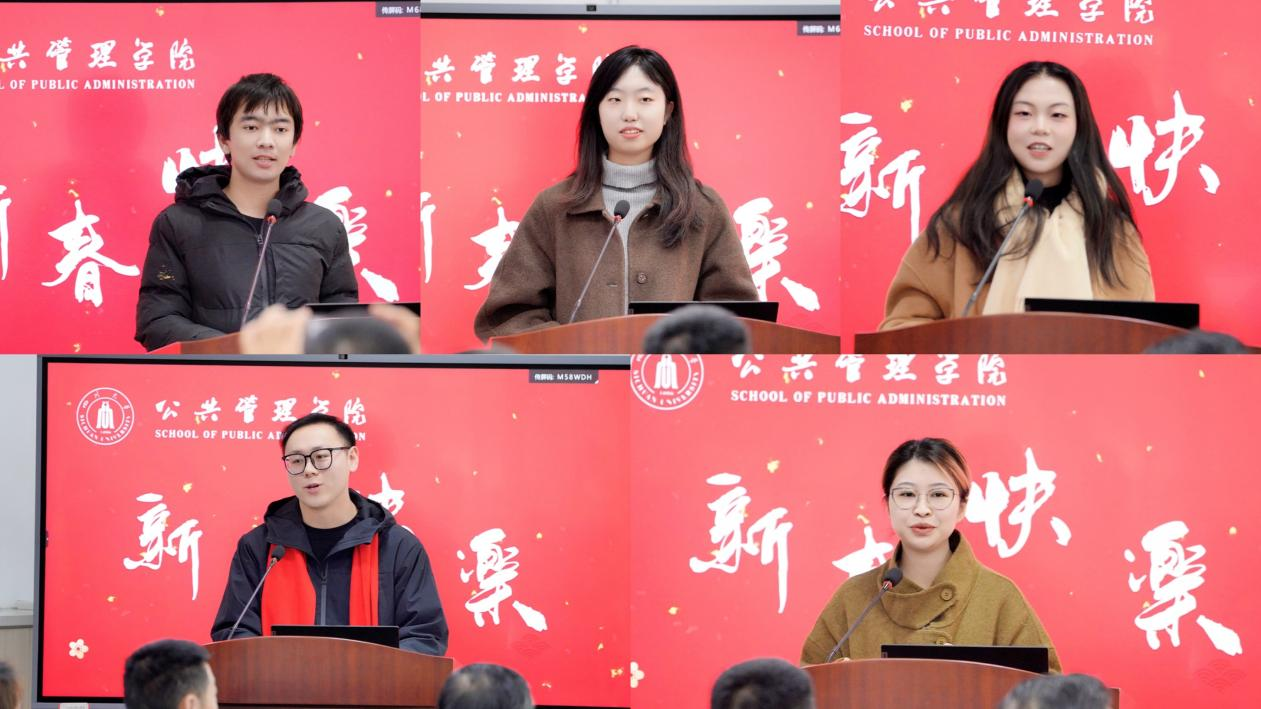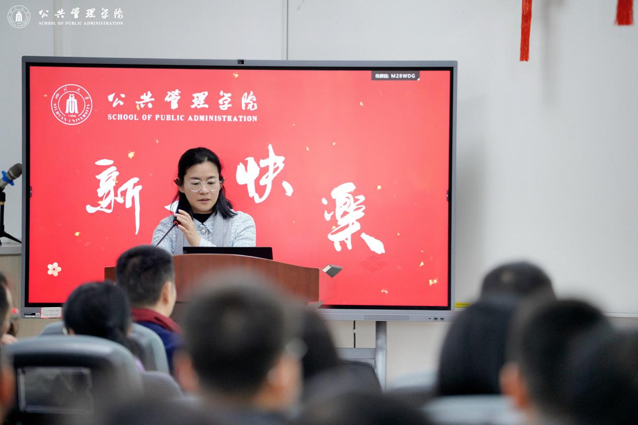 社会学与心理学系主任徐婷、行政管理系主任李强彬、劳动与社会保障系主任张浩淼、土地资源管理系主任朱红波、秘书档案学系副主任赵跃、信息资源管理系主任范炜,从党的建设、人才队伍、科研成果、社会服务等方面展示各系年度工作情况和取得的成绩。