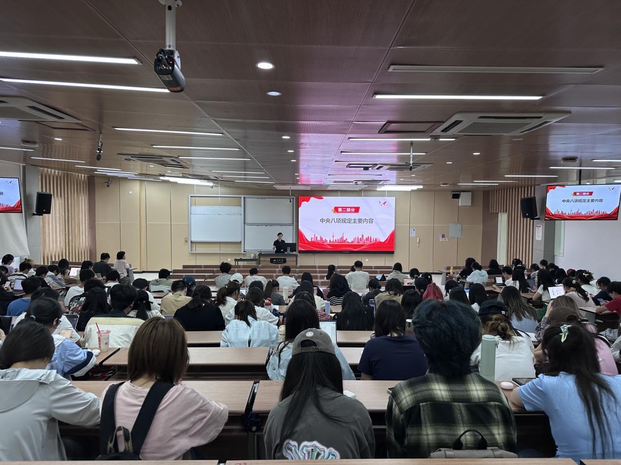 为增强员工纪律意识,弘扬笃学自律风尚,激发青年员工向党组织靠拢的积极性,5月23日下午,公司副经理袁莉教授在江安校区综合楼C座307为2024级本科生讲授“深入贯彻中央八项规定精神学习教育”专题党课。