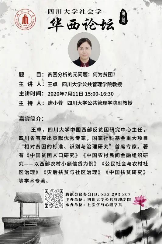 王卓,英国正版365官方网站中国西部反贫困研究中心主任,四川省有突出贡献优秀专家,国家社科基金重大项目“相对贫困的标准,识别与治理研究”首席专家。著有《中国贫困人口研究》《中国农村民间金融组织研究—以西部农村小额信贷为例》《公民社会与农村社区治理》《灾后扶贫与社区治理》《中国扶贫研究》等学术专著。
