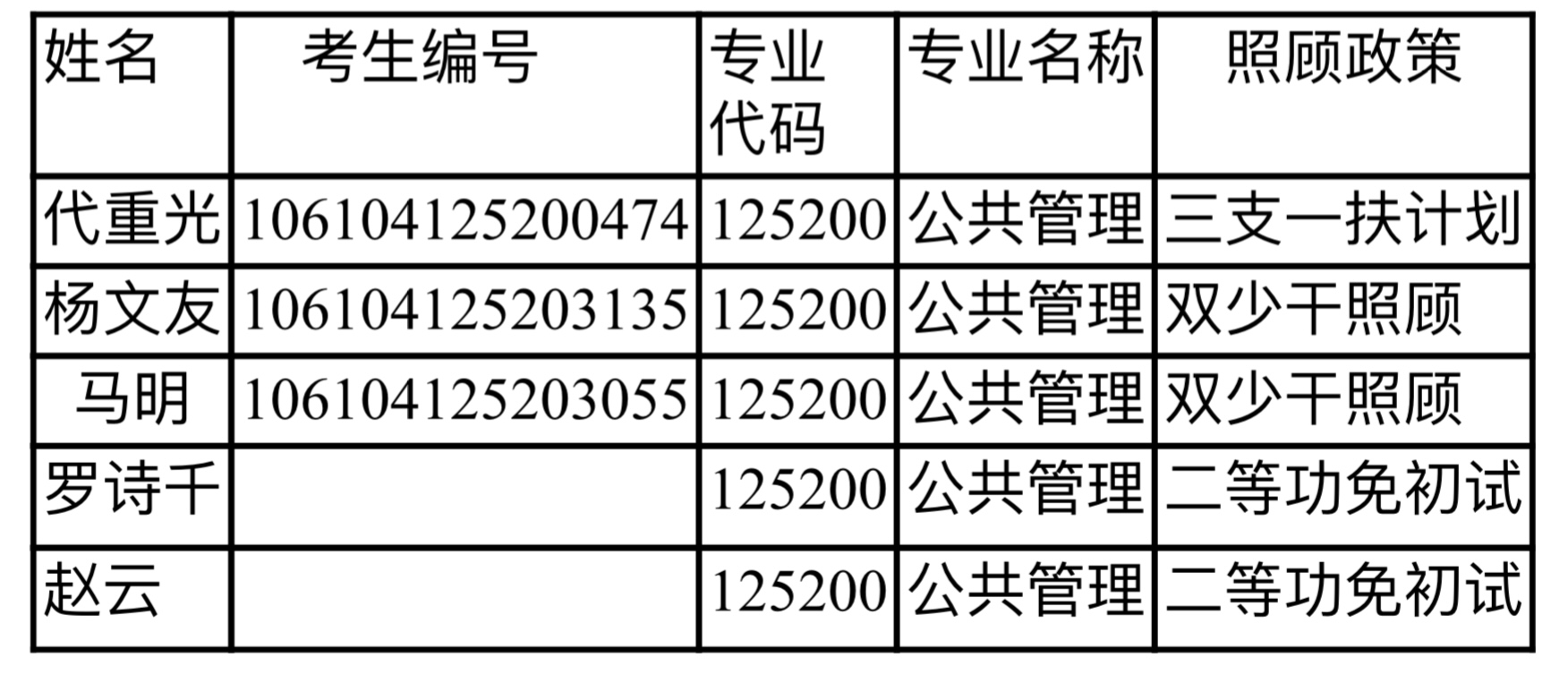 按教育部相关政策及提供的名单,现将报考公司符合享受照顾政策的考生名单公示如如下: