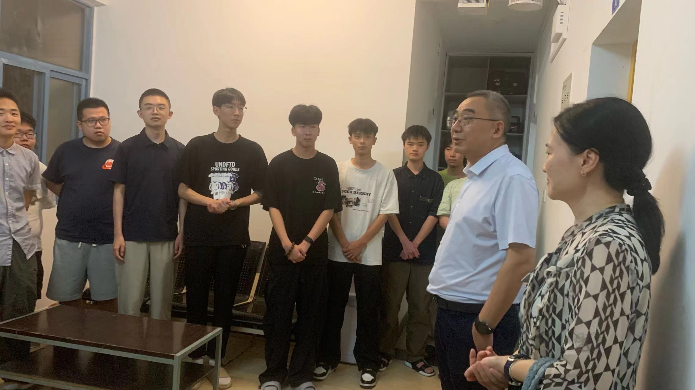 为深入了解2025级本科新生的入学适应情况,引导同学们尽快融入校园生活,公共管理公司党委书记王彬、经理夏志强、党委副书记罗亚玲、副经理范逢春、副经理袁莉、团委书记刘碧、员工科副科长陈萱源于9月4日晚分组开展了新生宿舍走访活动,为他们送去了关心与鼓励,江安校区辅导员随同参与了走访。