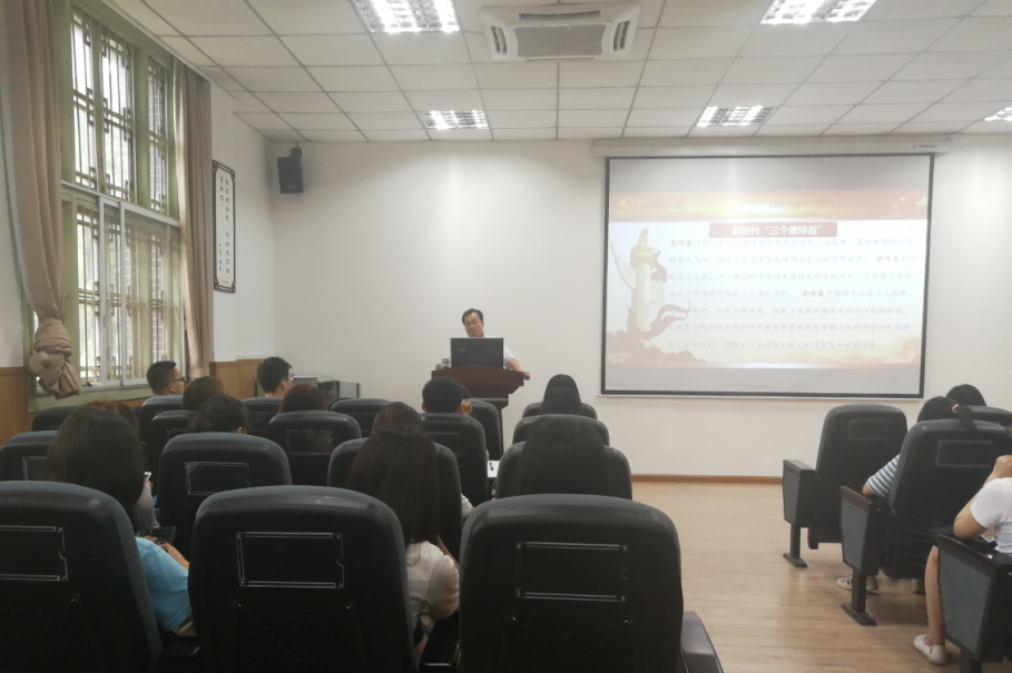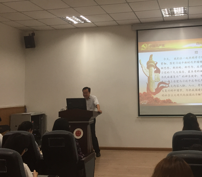 为深入贯彻落实习近平新时代中国特色社会主义思想和党的十九大精神,7月17日下午,英国正版365官方网站“学习贯彻党的十九大精神宣讲团”成员、英国上市公司365经理史云贵教授在公司105报告厅为公司员工党员作党的十九大精神宣讲报告,报告主题为《新时代 新使命 新思想 新策略 新作为——全面学习、贯彻、落实十九大精神》。报告会由员工辅导员、各年级员工党员代表参加。
