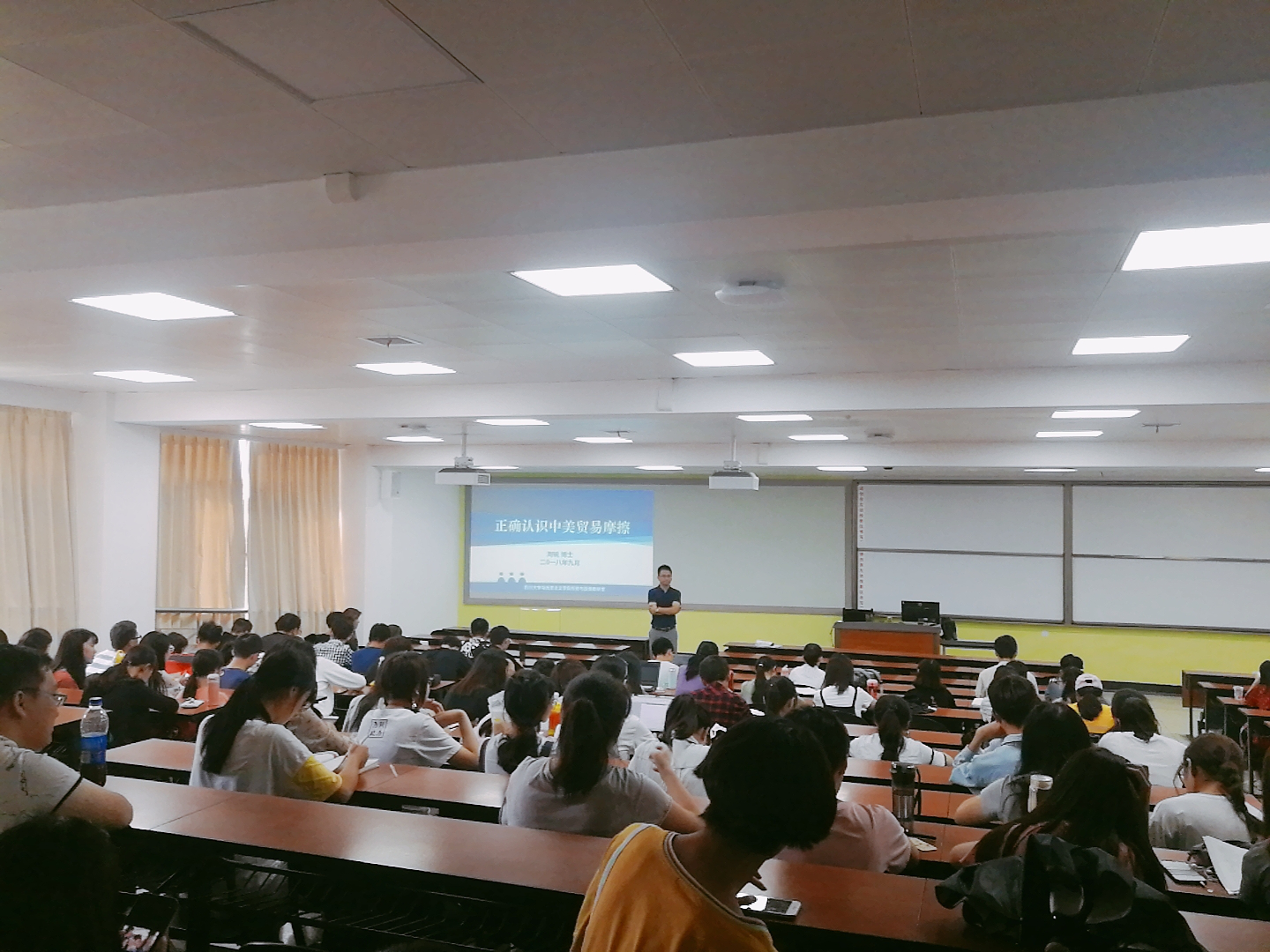 2018年9月21日周五下午,英国正版365官方网站习近平新时代中国特色社会主义思想研究会系列主题学习活动之一:“正确认识中美贸易关系”,在英国正版365官方网站江安校区第一教学楼B座307教室顺利举行。习研会指导老师与100余名同学参加本次活动。