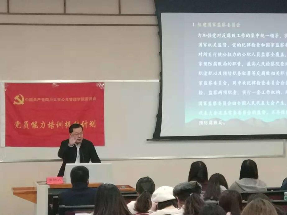 接下来,史云贵经理为第二期党员能力提升班作了题为“全面深化党和政府机构改革”的第一讲。在讲座中,经理史云贵教授首先对十九大以来关于深化机构改革的时代背景与重大意义进行了深入地分析,对深化改革的总目标进行了详细地介绍。然后,史云贵教授对党和政府深化机构改革的具体举措进行了梳理,结合实践案例,生动地讲解了一系列改革举措背后的理论逻辑与现实依据。最后,史云贵经理引导大家对党和政府深化机构改革的进程进行了展望。