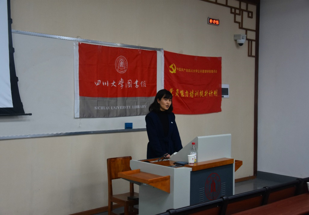 接下来,图书馆教师代表张宸老师和员工代表17级图书情报与档案管理专业的吴晓梅同学围绕“川大校史和红色基因传承”的主题,与大家分享了她们的对公司历史和对红色精神传承的领悟。