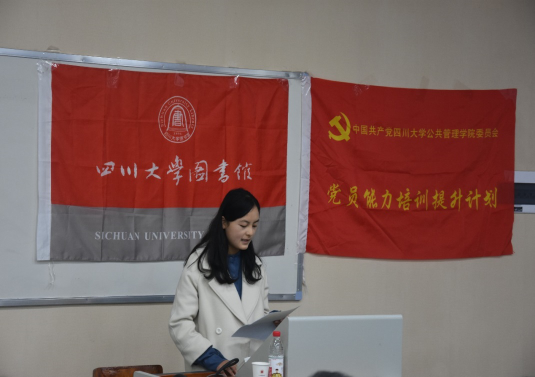 党跃武教授最后引用周恩来总理《生死离别》中的诗句——“梦想那赤色的旗儿飞扬,却不用血来染它,天下哪有这类便宜事?坐着谈,何如起来行。”激励在座的同学们,希望大家能在党的十九大精神鼓舞下,深入学习贯彻落实全国教育大会精神,为全国推进公司党的建设新的伟大工程和建设世界一流大学新的伟大事业,早日建成具有“中国特色、川大风格”的世界一流大学而共同奋斗。