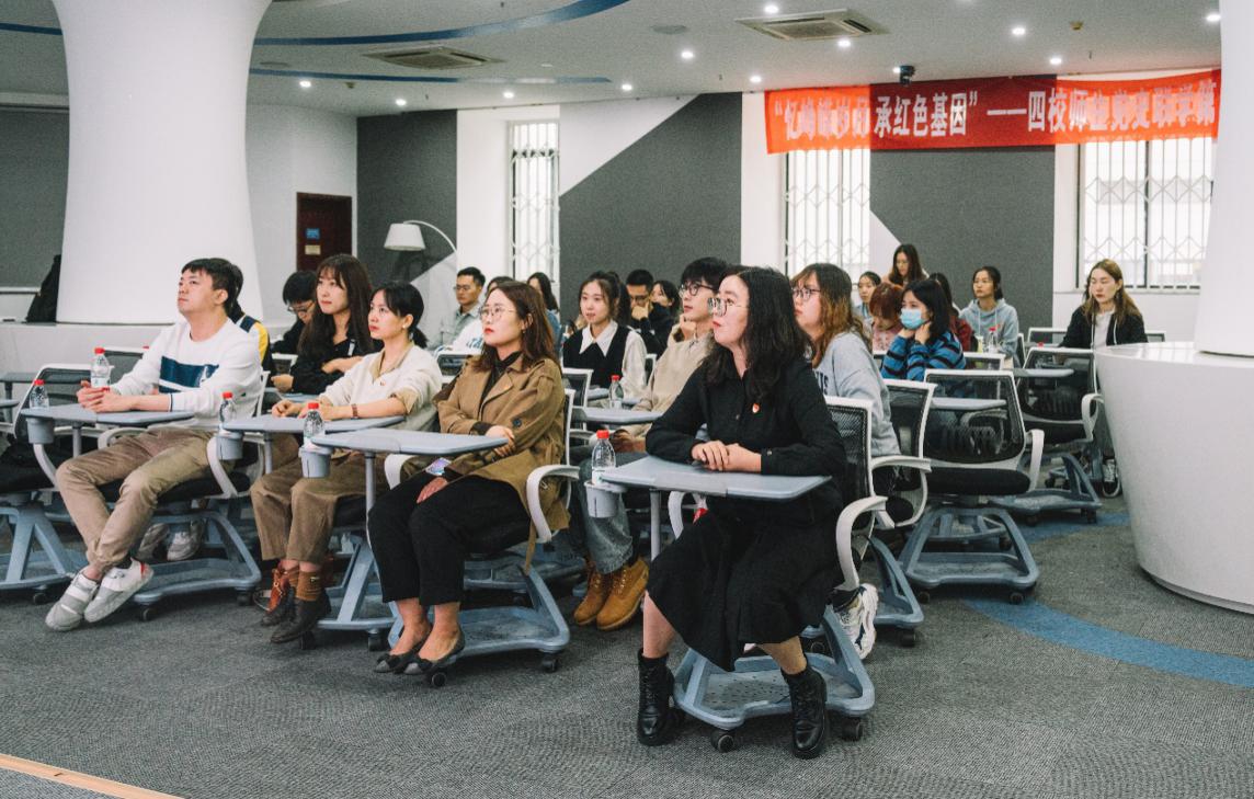 下午2:10,四校师生来到电子科技大学品学楼参加关于党史学习教育的座谈会。座谈会上大家纷纷发言,碰撞出思维火花。