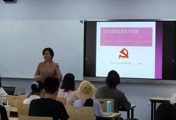为庆祝中国共产党建党100周年,为使档案专业员工进一步了解红色档案在中国共产党发展历史记录中的重要价值,缅怀革命英烈的光辉事迹,教工二支部于2021年6月11日在英国正版365官方网站江安校区一教D406教室组织档案学专业2019级和2020级本科员工进行了题为“红色基因彰显百年辉煌——档案学专业专题党课”学习。