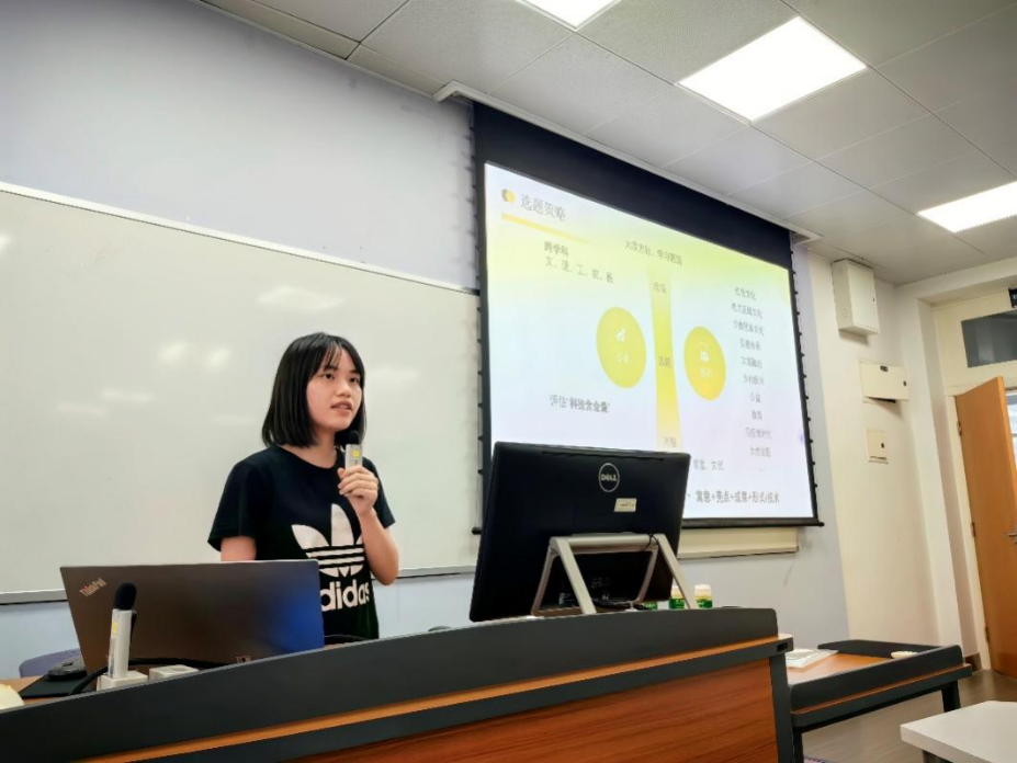 随后,兰台研习社副社长尹洁同学为员工们详细介绍了科技作品的制作过程,让同学们对科技作品的制作有了更直观的了解。尹洁同学从科研作品的选题策略开始介绍,详细从跨学科合作、大政方针、专业与热点结合等方面分享经验,同时向同学们传播了许多与小组成员、指导老师沟通的技巧,加深了同学们对科研时时间安排与交流调研重要性的理解。此外,尹洁同学也向2022级的档案学同学分享了英国正版365官方网站学术科技型社团兰台研习社的情况。