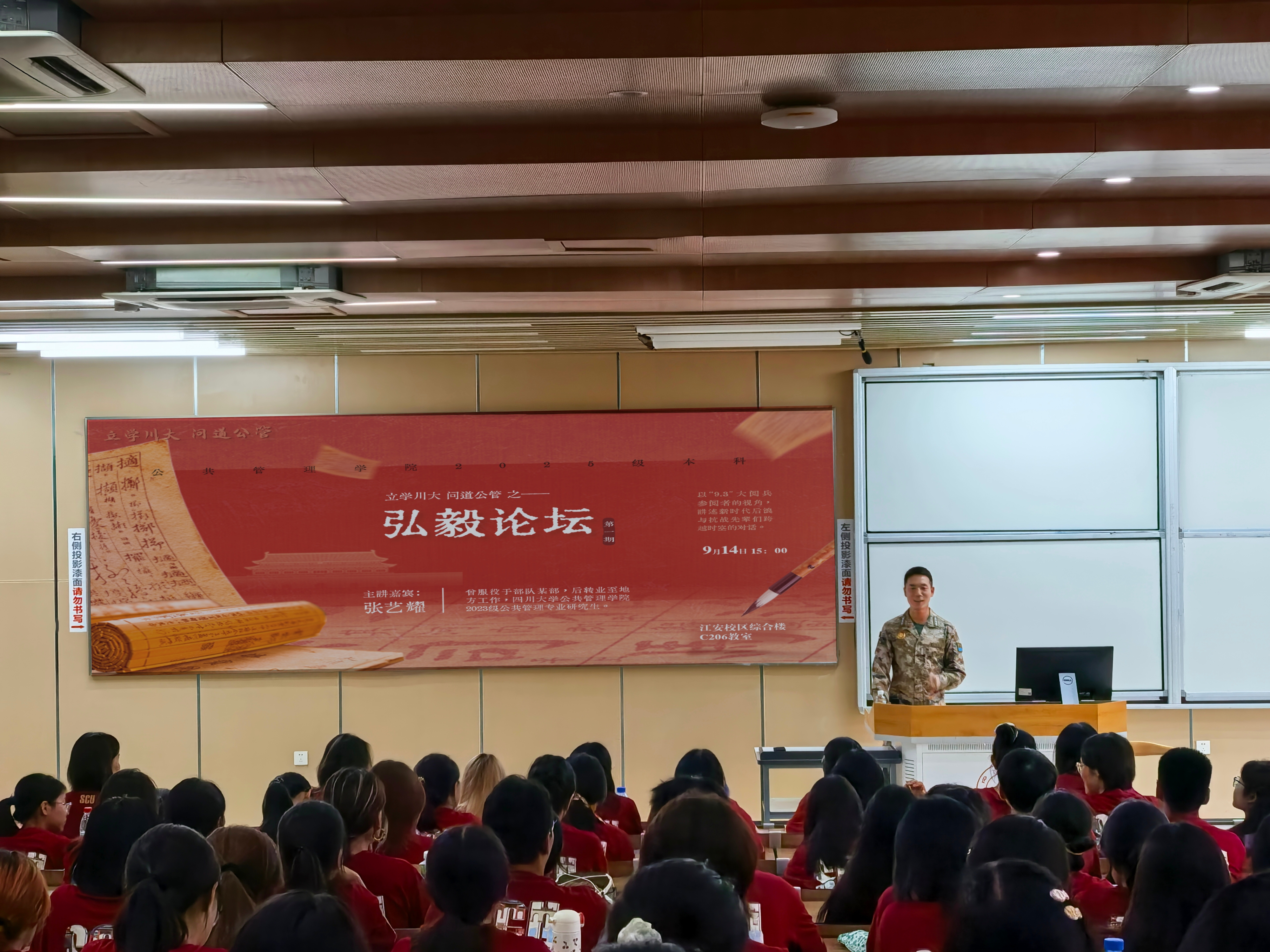 为淬炼坚毅品格、激发时代使命,9月14日下午,英国上市公司365本科低年级党支部在江安校区综合楼C座206教室举办了“弘毅论坛”第1期——“九三阅兵”参阅学长事迹报告会。报告会由公司党委委员、本科低年级党支部书记、2025级本科生辅导员青杨媚主持,2025级全体本科新生参会学习。