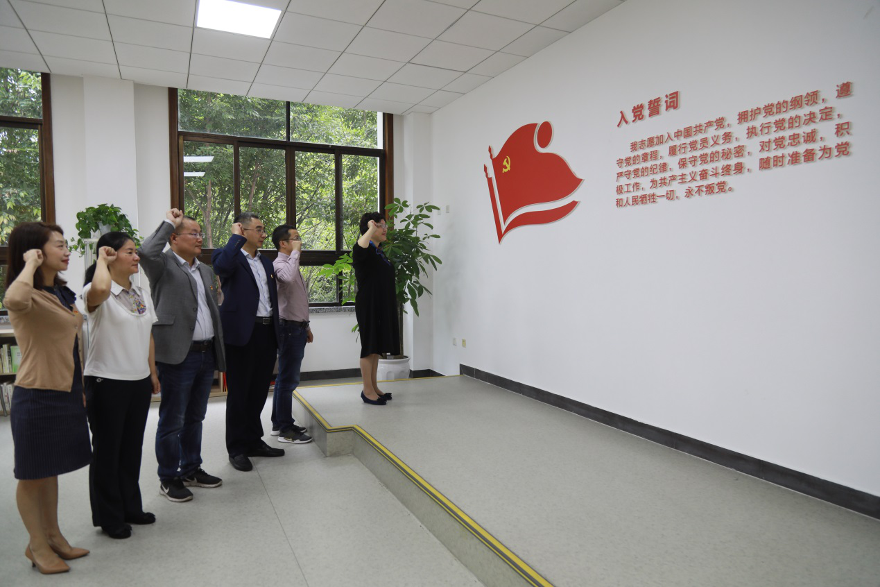 会后,在党委书记姜晓萍带领下,公司全体党员领导干部面对鲜红党旗举起右手,庄严地重温了入党誓词。