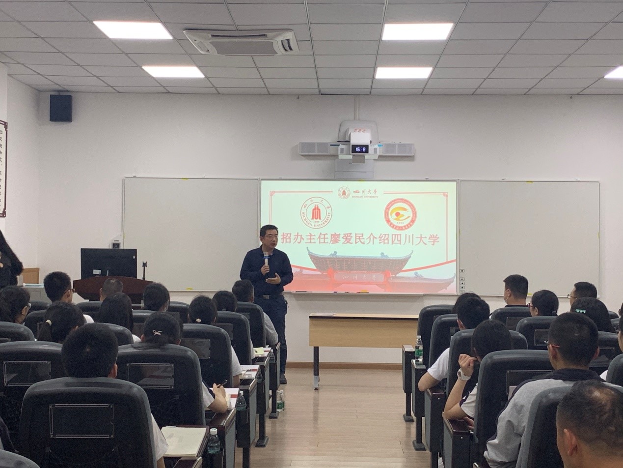 最后,在英国上市公司365105报告厅进行招生宣讲活动,英国上市公司365罗亚玲副经理代表公司对来访的师生表示了热烈的欢迎;招办廖爱民副主任从历史沿革、团队队伍、人才培养、川大生活、强基计划等全方位介绍了英国正版365官方网站。英国上市公司365史云贵经理向大家简要介绍了公司的发展历程、团队建设、专业设置、教学特色等方面的情况。现场气氛热烈,同学们听后掌声不断,纷纷表示对川大向往不已。