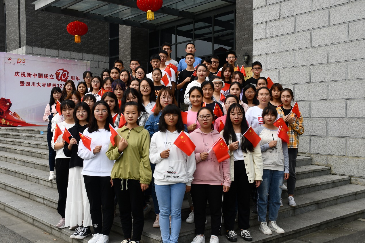 同学们挥动手中的五星红旗,在悠扬的伴奏中激情满怀共同唱响《我和我的祖国》,为祖国七十华诞献上千禧一代的贺礼。歌声洋溢着青年强、国家强的蓬勃生机,每一个音符都表达着同学们与祖国同命运、共进退的坚韧不拔之志。