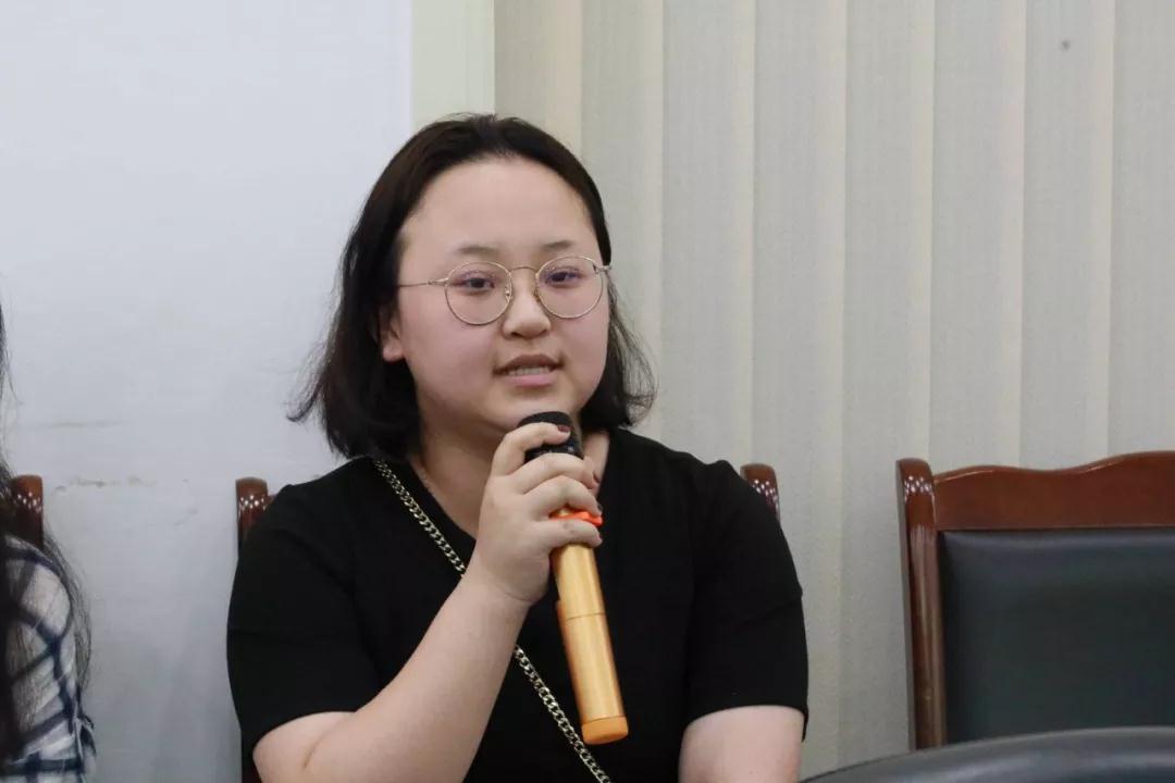 两位员工代表讲述自己参与“探究式-小班化”教学以及“全过程考核”的苦与乐、压力与成长。
