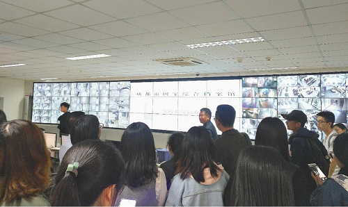 最后,安全保障部负责人为同学们详细介绍了档案馆的安防系统,在整体的架构下,设置多级联动管理平台,如消防系统、电子巡更系统、楼宇自控系统、智能化集成系统等。同学们感受着现代信息技术给档案馆安全保障工作带来的变革。