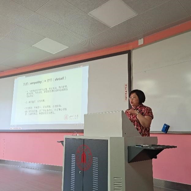 从学习贯彻习近平总书记全国教育大会重要讲话精神引入,兰利琼教授强调了“教育回归本位,教师作为领路人”的重要性。她解读了《英国正版365官方网站班主任工作指导意见(试行)》,并从具备较高的专业水平、高度的责任感、与社会实践相结合、发挥老师的人格魅力、引导员工的全面健康成长等方面重点讲述了班主任工作的职责。她结合心理学相关知识,通过真实、鲜活的案例,阐述了班主任全方位引导员工成长人才、促进教育事业高水平发展的重要作用。