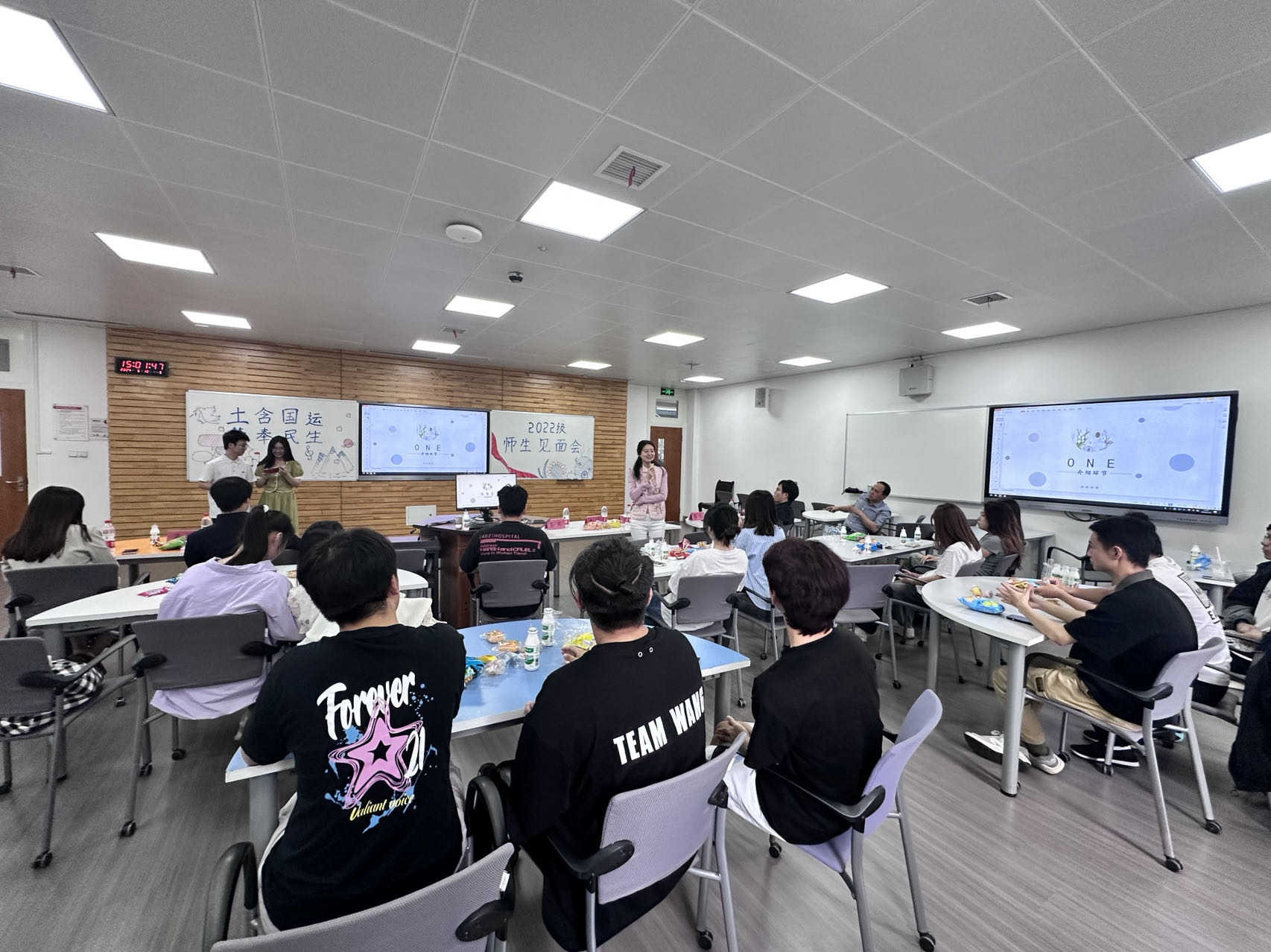见面会由师生自我介绍、文艺节目表演、游戏互动、合影等环节组成。这次师生见面会的成功举行为同学们提供了更深入了解土地资源管理专业的机会。通过与老师们的交流与互动,同学们不仅开阔了专业视野,而且对土地资源管理专业的重要性有了更加清晰的认识,激发了同学们的专业学习热情。