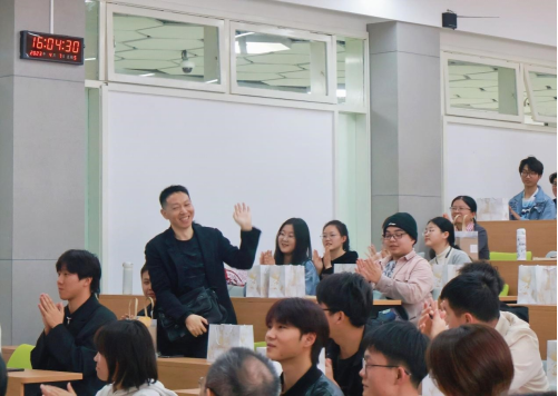 游戏结束后,全体老师上台带领全体同学合唱系歌《真心英雄》。伴着温暖的歌声,活动走近了尾声。此时,“隐藏环节”触发,主持人邀请范逢春老师上台即兴发言。范老师以大家熟悉的风格,幽默而真诚地表达了自己参与本次活动的喜悦之情,代表行政管理系全体老师表达了对同学们的关心与关爱,勉励大家在行管大家庭中努力学习携手并进,共同建设高水平的国家一流本科行政管理专业。最后,全体老师与同学,移步综合教学楼C座大门前,合影留念。