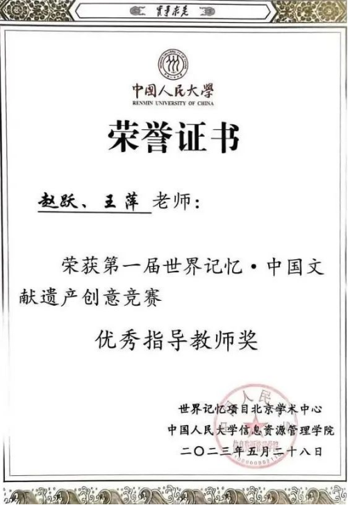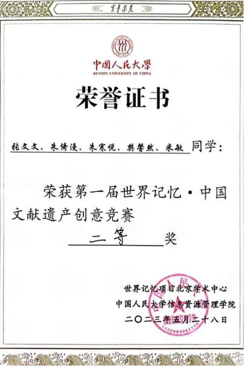 公司档案学专业本科生团队喜获“世界记忆•中国文献遗产创意竞赛”二等奖