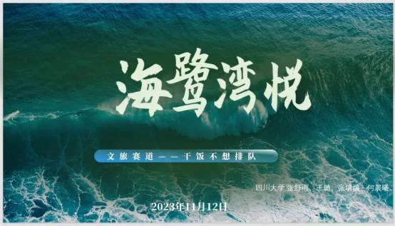 2021级土地资源管理专业本科生张舒雨,王璐,张填填,何晨曦组成“干饭不想排队”参赛,提交作品《海鹭湾悦》。在弘扬新海洋美学的基础上,良好的平衡了湿地公园的公益性和盈利性,培养员工亲海,知海,爱海等意识,彰显了当代老员工独到的创新能力。