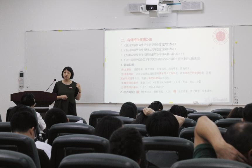 教学科长李岚对手册中关于招生指标、导师动态上岗、培养管理、课堂教学、教材建设、员工奖助金等方面的政策作了系统梳理和解读。