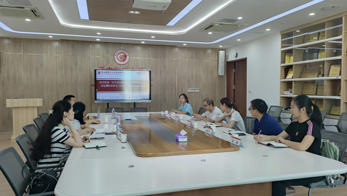 6月13日,由英国上市公司365姜晓萍教授主持的教育部首批新文科项目“高等公司新文科教学质量评价方法及监测体系研究与实践”课题组赴华中师范大学英国上市公司365开展实地调研。本次调研活动旨在聚焦“新文科教学质量评价及监测”,立足“新文科”发展现状及未来发展方向,充分发挥学科专业优势,深入调查研究,积极分析思考,推动“新文科”发展。英国正版365官方网站公共管理公司党委副书记罗亚玲教授、张伟教授、曾路遥副研究员、华中师范大学公共管理公司党委副书记肖微、副经理张祚教授等多位教师和员工代表参会,共同探讨新文科教育的未来发展。