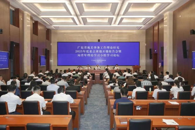 罗展怀指出,今年以来,广东机关事务系统认真落实全国第六届机关事务理论研究暨政府运行保障管理团队建设研讨会精神,坚持以我为主,紧密结合实际,联动高校研究机构,深入扎实开展理论研究工作,取得积极进展,打开了全新局面。他强调,开展好机关事务理论研究工作,一要进一步紧贴业务实践。立足近年来广东机关事务创新发展的丰富实践土壤,聚焦资产、服务、经费三大管理职能,着力挖掘机关事务领域的基础性、关键性、战略性问题,以高质量的理论研究提炼改革经验,破解实践难题,引领高质量发展。二要进一步完善工作机制。在共同开展重点课题理论研究中不断深化与广东机关事务研究院的务实合作,更好发挥双方优势,推动理论与实践的深入融合。加强对全省机关事务系统理论研究的统筹协调,引导研究资源向重点关键领域聚焦,形成研究合力。三要进一步发挥青年骨干主力军作用。青年干部要珍惜青春年华,把握宝贵机遇和难得平台,立足本职岗位,积极投身理论研究和业务实践,将个人成长融入机关事务工作高质量的历史进程。他要求,课题研究过程中,要认真组织集体研究,扎实开展实地调研、深入开展课题研究,领导干部要以身作则、以上率下,带动大家大学习、深调研、真研究。要认真践行过紧日子要求,坚持勤俭办一切事业,注重细节、精打细算,切实把有限的科研经费用在课题研究的“刀刃”上。